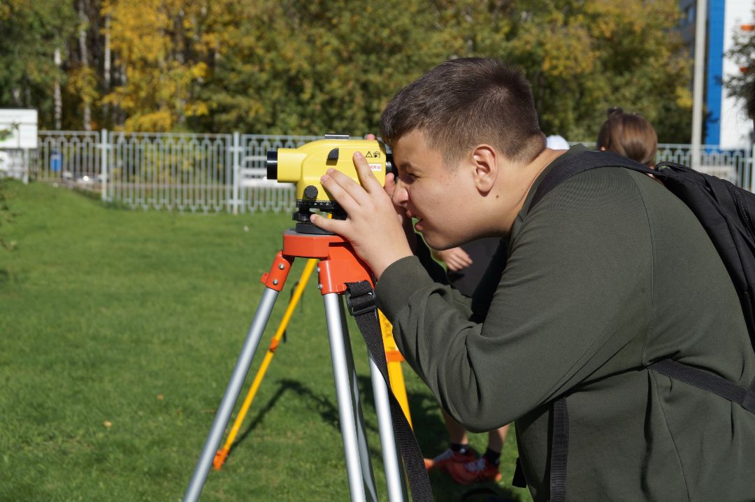 На станции «Геодезическая» ребята научились работать с нивелиром и определять превышение высот.