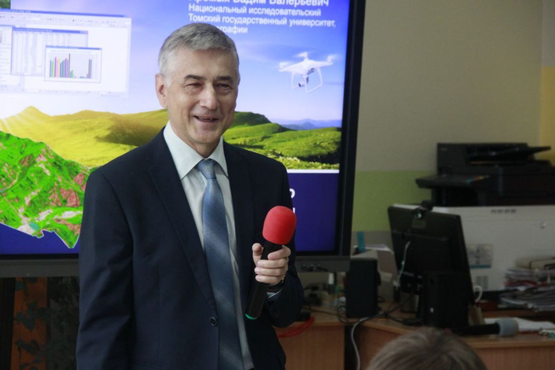 В рамках встречи заведующий кафедрой географии Вадим Валерьевич Хромых провел для учащихся содержательную лекцию. Он не только познакомил ребят с геоинформационными технологиями, но и продемонстрировал, как эти инструменты меняют профессию современного географа, выводя её на новый уровень.