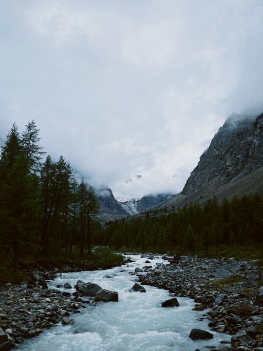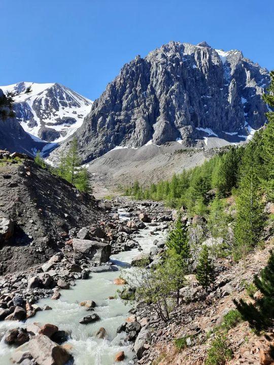 На данном фото представлена Долина Актру. Оно было сделано с гидрологического моста во время выполнения практических задач.